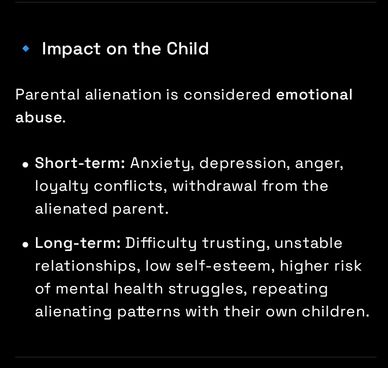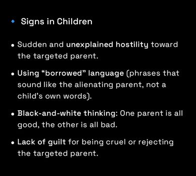 ⚠️Parental alienation can leave deep and lasting effects on children, parents, and family relationships. Recognizing the signs early is crucial for intervention and healing.